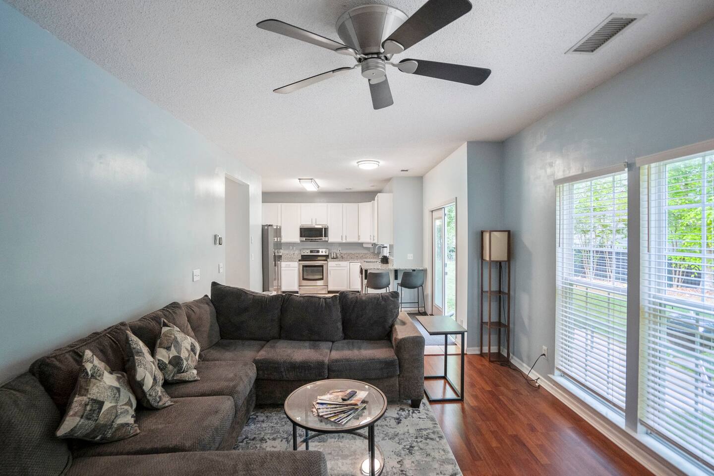 Conveniently located 15 minutes from Downtown and minutes from the UNC Charlotte area this spacious home offers modern upgrades and a large spacious yard that is great for pets or outdoor activities. Situated on a culdesac and backing up to natural woods this home offers a quiet relaxing space all year long. Outside you'll find a horseshoe pit and hammock to help you enjoy your space. Inside you have lots of natural light and bedrooms that provide spacious comfortable areas.