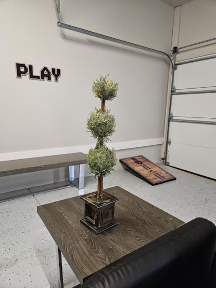 ⭑Master Bedroom:⭑ ✔ Cozy queen-sized bed for a restful night's sleep ✔ Ensuite bathroom for added privacy ✔ Spacious walk-in closet and ample clothing storage ⭑Second Bedroom:⭑ ✔ Queen-sized bed located on the first floor ✔ Conveniently situated near the entrance for easy access ✔ Dresser and closet for storage ⭑Third Bedroom:⭑ ✔ Fun and functional room with two sets of twin bunk beds (4 beds total) ✔ Perfect for kids or groups, complete with a dresser and closet space ⭑Living Room:⭑ ✔ Full pullout couch that comfortably sleeps two ✔ Smart TV for your favorite shows and movies ✔ Access to board games and life-sized games for family fun ⭑Game Room:⭑ ✔ Equipped with family-favorite games like Uno, Monopoly, Jenga, and more ✔ Corn hole game and checkers for hours of entertainment ⭑Kitchen and Dining Area:⭑ ✔ Fully equipped kitchen with a stainless steel oven, LG refrigerator, and dishwasher ✔ Coffee maker (Keurig) and all cooking basics provided, including pots, and pans ✔ Dining table perfect for enjoying home-cooked meals together ⭑Bathrooms:⭑ ✔ Spacious master bathroom with a bathtub and walk-in shower ✔ Hair dryer, shampoo, conditioner, and body soap provided ✔ Extra half bath for guest convenience ⭑Rooftop Terrace:⭑ ✔ Incredible views from the fourth-floor rooftop ✔ Outdoor dining area with seating for a relaxing evening ✔ Perfect spot for enjoying sunsets or stargazing ⭑Outdoor Space:⭑ ✔ Private backyard with a fire pit and outdoor furniture ✔ Ideal for cozy nights by the fire or outdoor dining ⭑Additional Amenities:⭑ ✔ Free washer and dryer in-unit ✔ Iron, extra linens, and blankets provided ✔ High chair, pack 'n play, and children's dinnerware for families ⭑Safety and Security:⭑ ✔ Exterior security cameras and entry camera ✔ Smoke alarm, carbon monoxide alarm, and fire extinguisher ✔ First aid kit for added peace of mind ⭑Entertainment and Connectivity:⭑ ✔ Fast Wi-Fi and dedicated workspace for remote work ✔ Board games, life-sized games, and arcade games for endless fun ⭑Heating and Cooling:⭑ ✔ Central air conditioning and heating for year-round comfort ⭑Parking and Facilities:⭑ ✔ Free parking on premises ⭑Services:⭑ ✔ Easy self check-in with a keypad Your stay promises unmatched comfort, endless entertainment, and a memorable experience. Book now and start your Charlotte adventure in style! ⭑Conclusion⭑ Whether you're visiting with family, friends, or a group, this modern townhouse offers everything you need for a perfect stay. Don't miss out—reserve your spot today and experience it all!