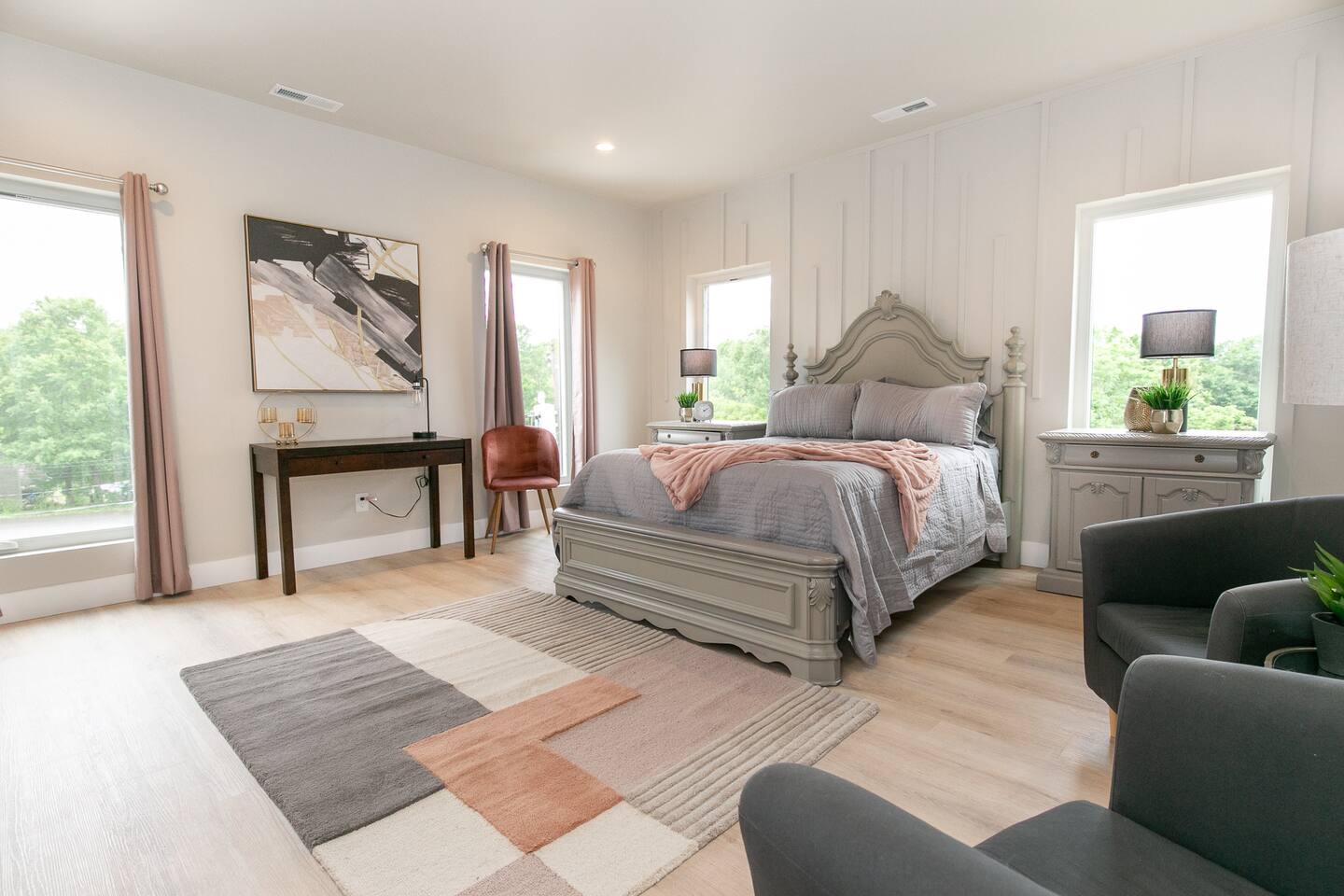 - Rooftop Access: Please be mindful of safety when using the rooftop terrace, especially with children. The area is perfect for relaxing, but we recommend close supervision for little ones. - Exterior Security Cameras: For your safety, there are exterior security cameras at the entrance of the property. These are only in place for security purposes and do not record any interior spaces. - Noise Considerations: While the home is in a great location, we kindly ask that guests keep noise levels down after 10 PM out of respect for our neighbors. - Self-Check-In: The property features a convenient self-check-in process with a keypad, allowing you flexibility in your arrival time. Please also note that the home is multi-level with stairs between each floor, which may not be ideal for those with mobility issues. We do not allow parties, there will be a $500 fee.