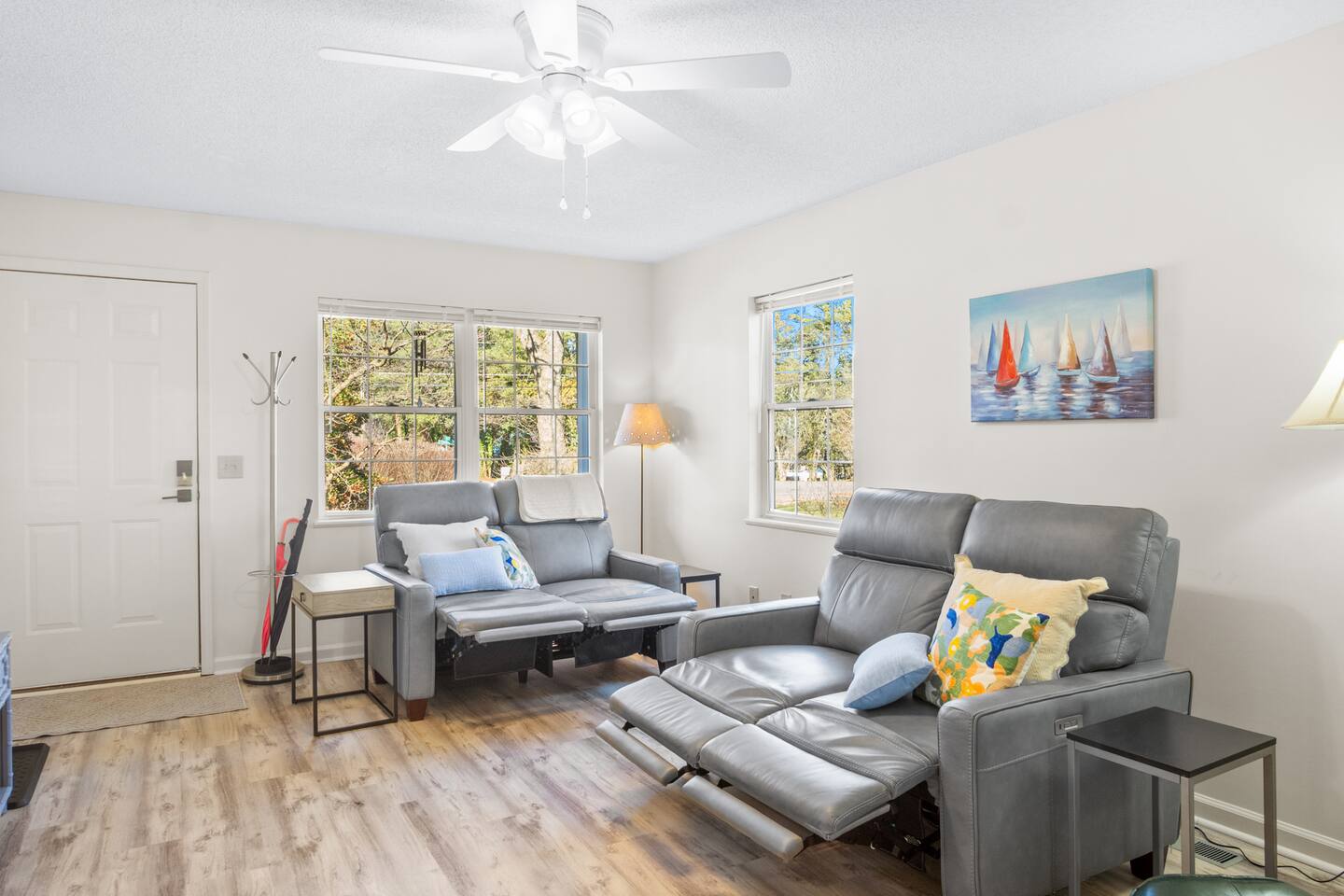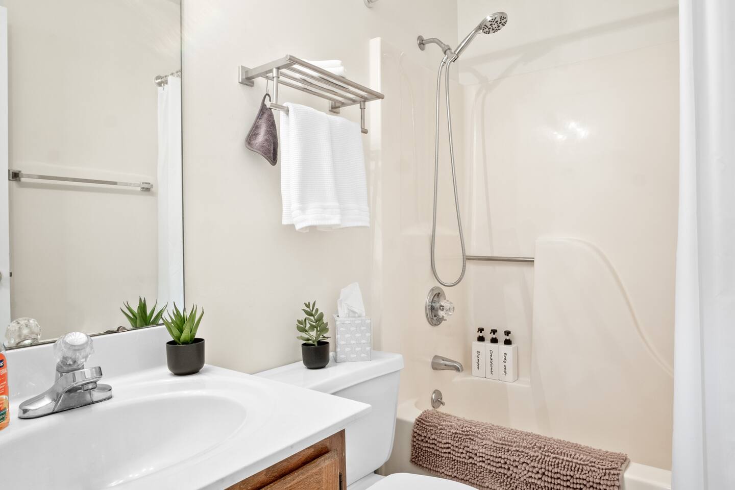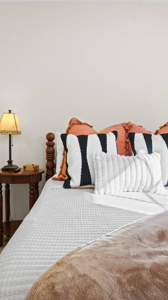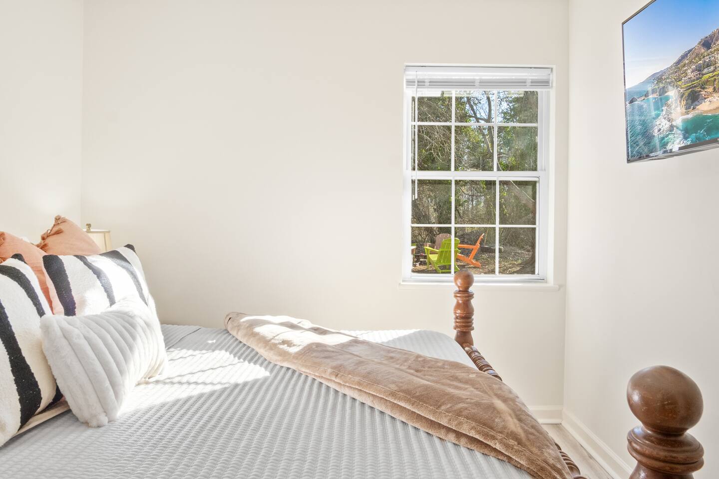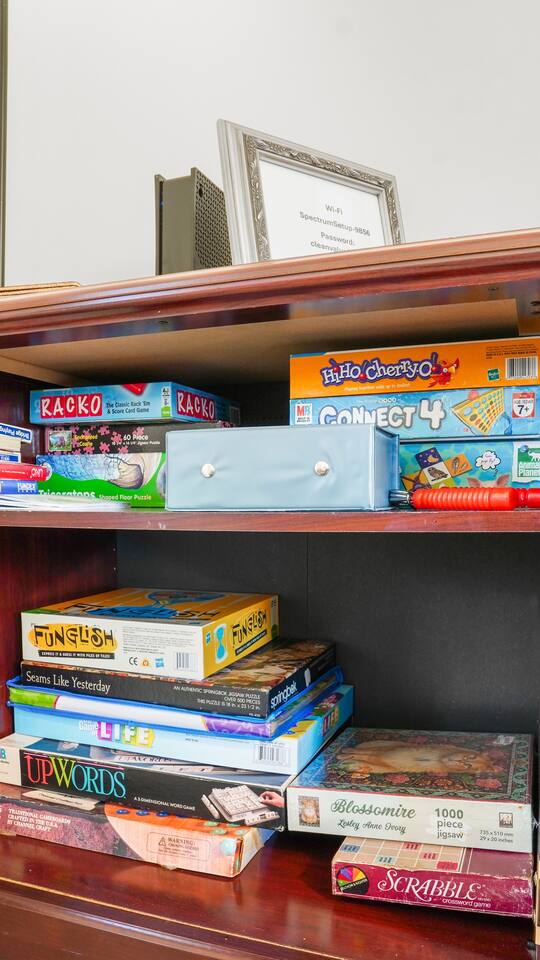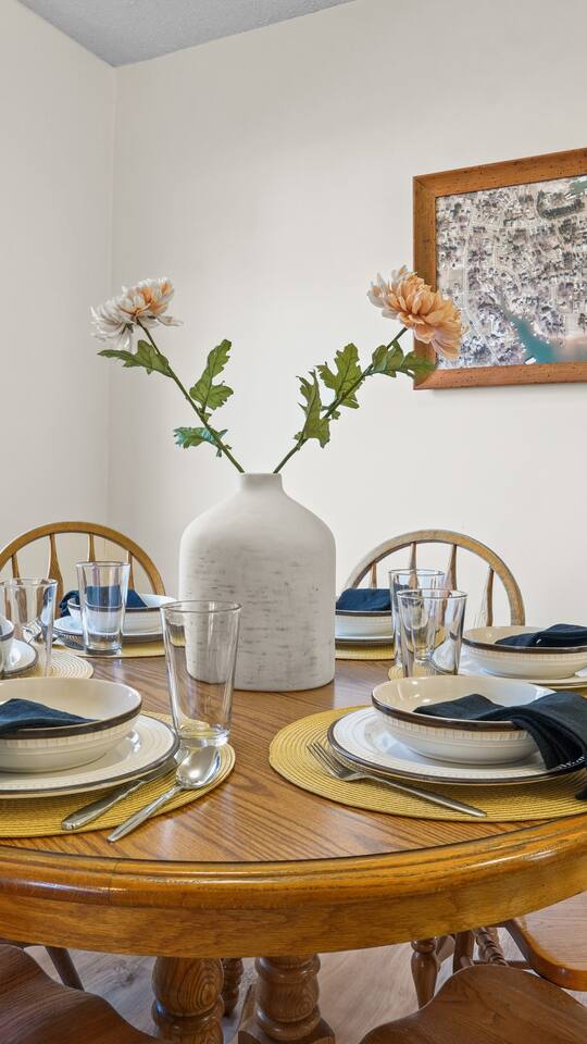 The large framed aerial map on the dining room wall covers the entire Commodore Peninsula. We hope this is helpful and interesting to orient you a little better. ☼ Living Room ☼ ➻ Welcoming area with natural light ➻ Spacious with a smart TV ➻ Plush sofas and comfortable chairs ➻ Scrabble, Codenames, Yahtzee, and a variety of board games ☼ Dining Area ☼ ➻ Dining table with seats for 6 ➻ Chic dining set for family and friends ➻ Open and inviting for memorable meals ➻ Easy access to the kitchen ☼ Kitchen ☼ ➻ Refrigerator, microwave, dishwasher, and oven ➻ Coffee maker and kettle for coffee and hot tea ➻ Ready-to-use cookware, utensils, and dinnerware ☼ Bedrooms ☼ ➻ 3 bedrooms ➻ Luxurious queen, full, and twin beds ➻ High-quality, plush bedding for a blissful sleep ➻ Nightstands with tasteful decor ☼ Bathrooms ☼ ➻ 2 bathrooms ➻ Bathtubs and showers ➻ Bright, sanitized, and well-stocked with necessities ➻ Private en suite options in master bedroom ➻ Extra towels ☼ Outdoor Space ☼ ➻ Immaculate backyard to unwind ➻ Bocce and a cornhole set ➻ Outdoor seating for 6 around a fire pit ➻ More outdoor seating for two with a mini table ☼ Laundry Room ☼ ➻ Convenient in-unit washer and dryer ➻ Organized shelves and ample space