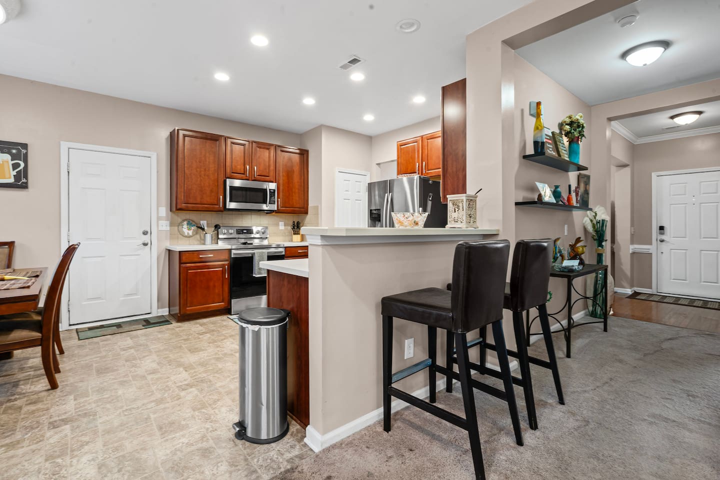Welcome to your perfect getaway just minutes from beautiful Lake Norman! This well-maintained home is located in the heart of Cornelius, within walking distance to local parks, restaurants, and shops. Enjoy the best of lake life while staying in a peaceful neighborhood. Outside, unwind in your heated private pool or lounge on the flat, fenced-in yard for complete privacy. Pets are welcome.