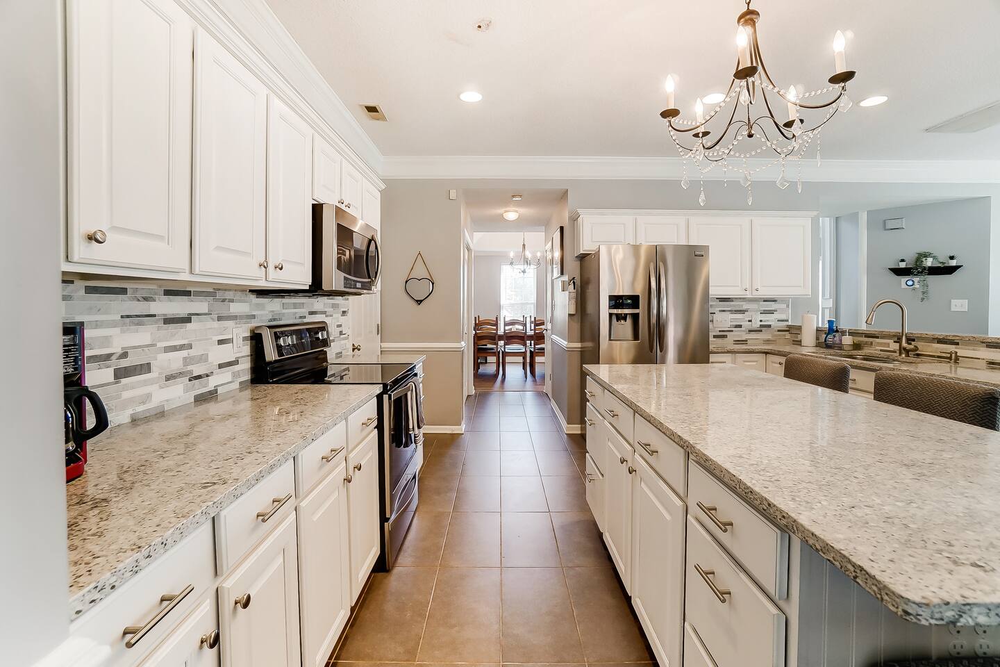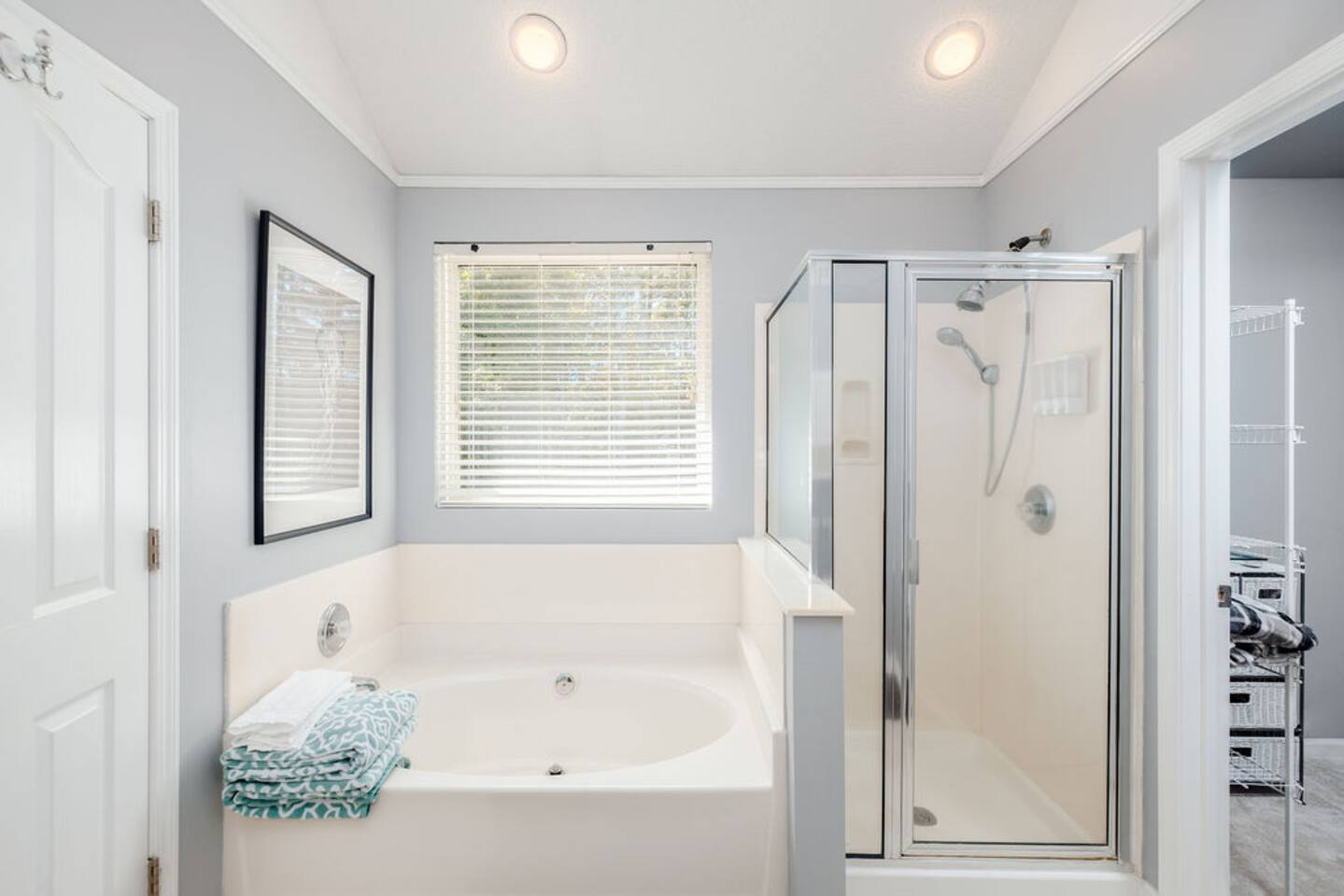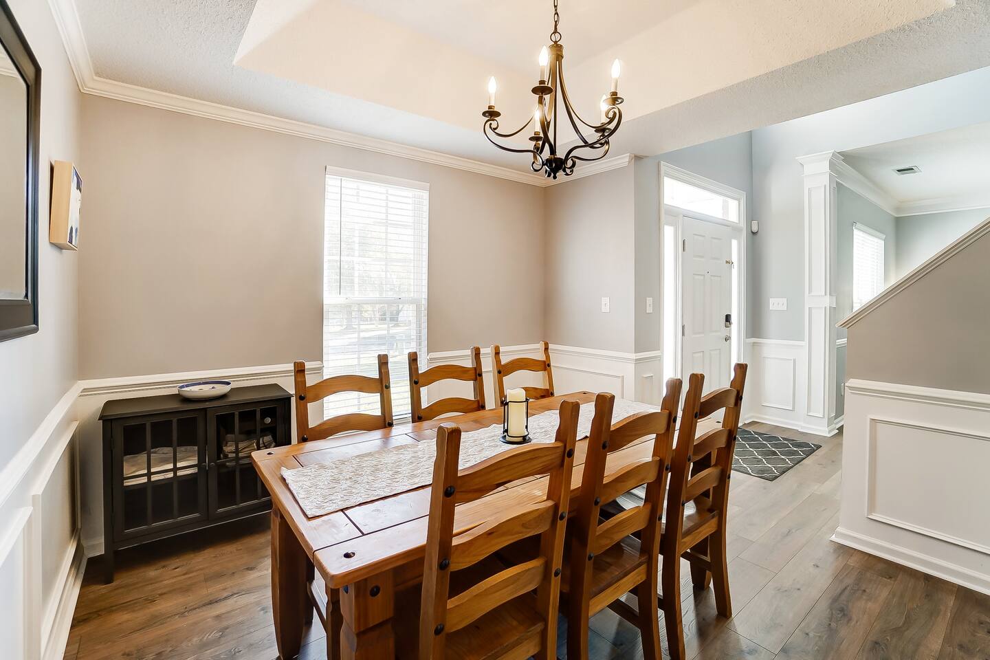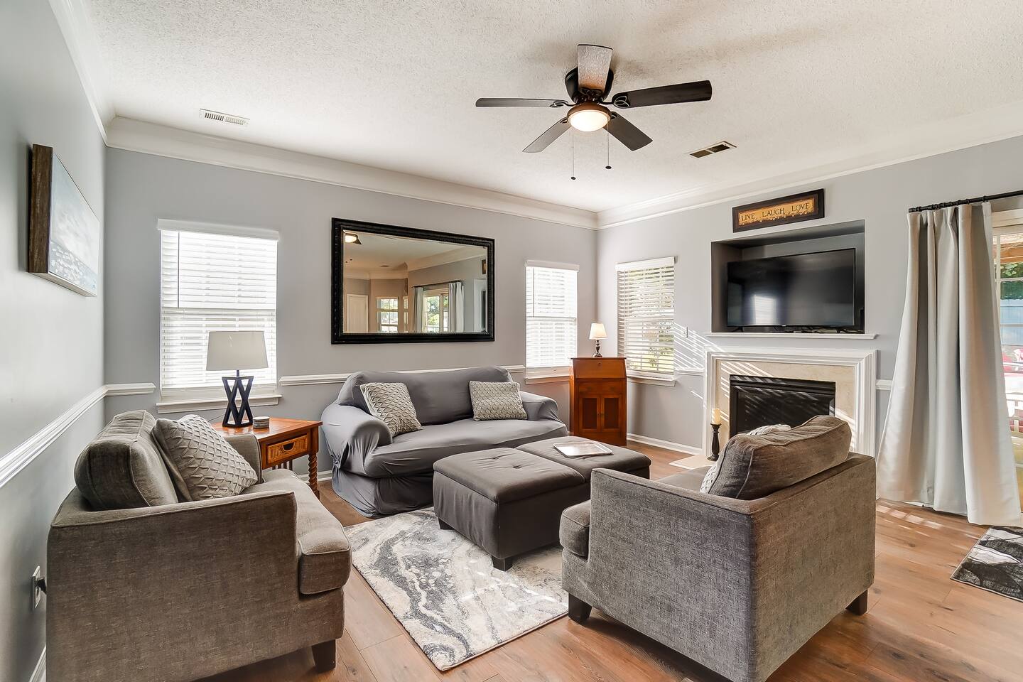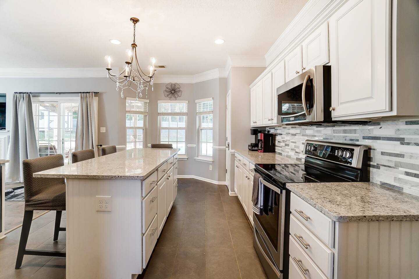 Guests have full access to the entire home and backyard, including the pool (seasonal), patio, and fenced yard except for two locked owners closets (one in the kitchen, one in the upstairs hallway), the garage, and the backyard shed. We have to store stuff somewhere! The driveway accommodates up to 4 vehicles — all parking must be in the driveway (no street parking per neighborhood rules). You’ll enjoy easy self check-in with a keypad code and complete privacy during your stay. (Weekly pool and yard service may stop by to maintain the property — they’ll only access the backyard, never the interior.)