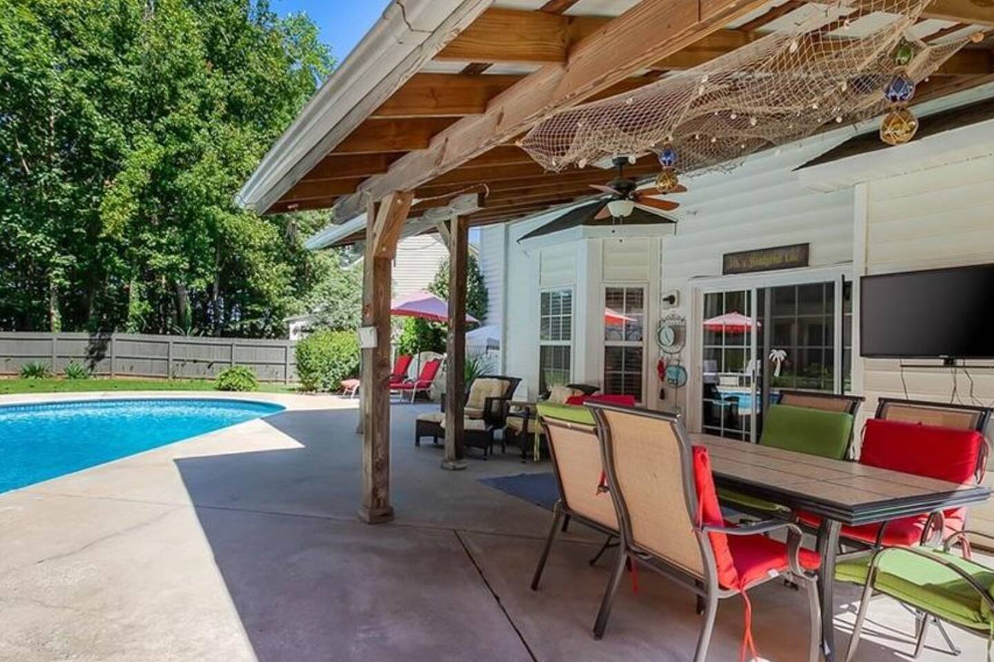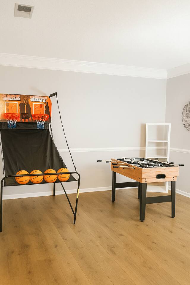 🏡 A few helpful notes to make your stay safe and comfortable: Bedrooms: All four bedrooms are located upstairs. Children & Safety: Kids are welcome but must be closely supervised around the pool. Please keep doors and windows to the backyard closed and locked at all times. The backyard in its entirety is fenced in, but there is no separate fence or gate around the pool from the kitchen sliding glass door. Pets: Sorry, no pets allowed. Quiet Hours: 10 PM – 7 AM, per local noise ordinances. Security: Exterior cameras (front doorbell + outdoor floodlights in front and back) record audio and video for safety. No cameras inside the home. Parking: Driveway parking for up to 4 vehicles. No street parking is permitted. Check-in/Check-out: Check-in 4 PM | Check-out 10 AM. Early check-in or late check-out may be available for $50/hour. Supplies: Starter set of essentials provided (paper towels, toilet paper, dishwasher detergent) — enough for approximately six nights. No Smoking/Vaping: Not allowed inside or in the garage. Occupancy: Maximum of 10 guests. No parties or events permitted. Climate Control: Nest thermostat allows heating up to 74°F and A/C down to 70°F for system protection. Pool: Professionally maintained weekly (March–Sept). Availability may vary due to weather or maintenance needs. Pool closed Oct–Mar.