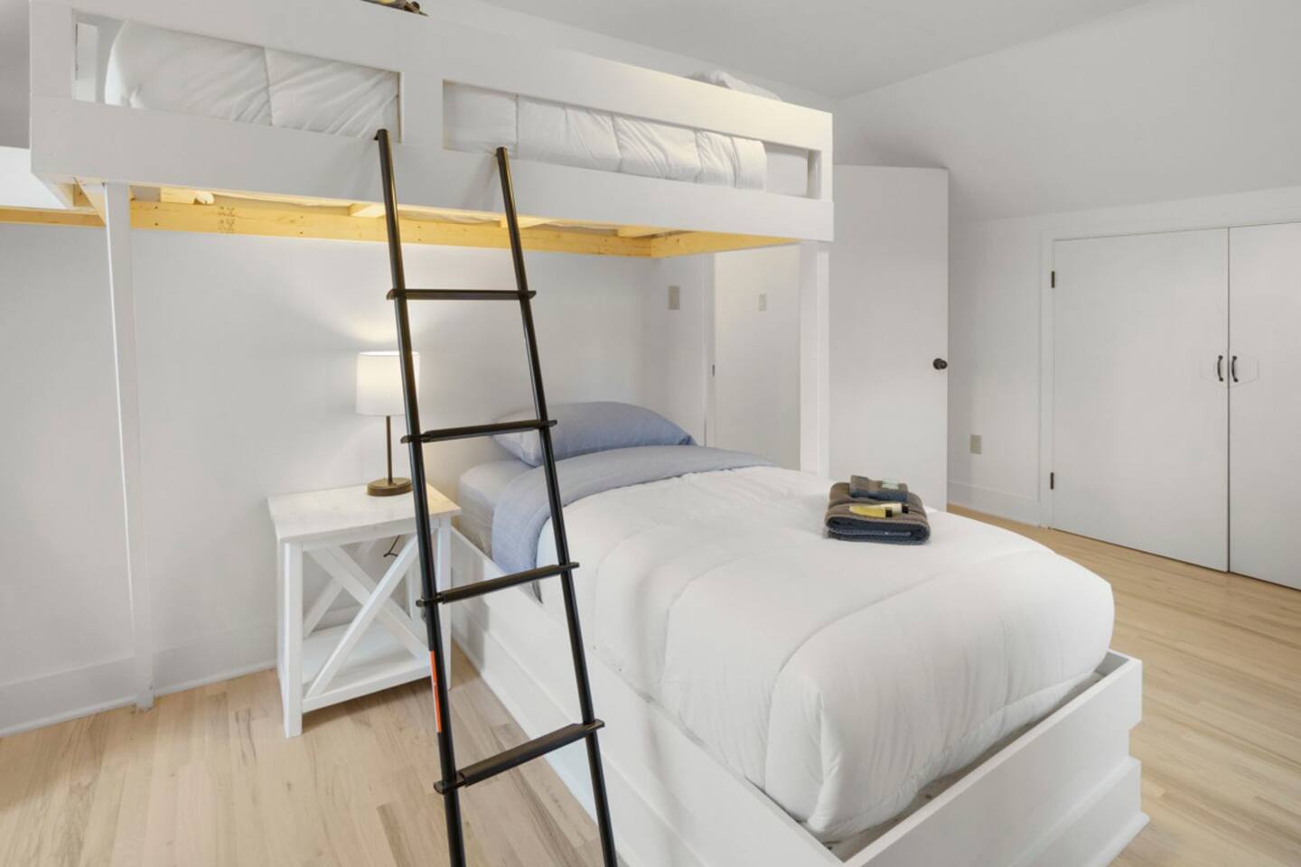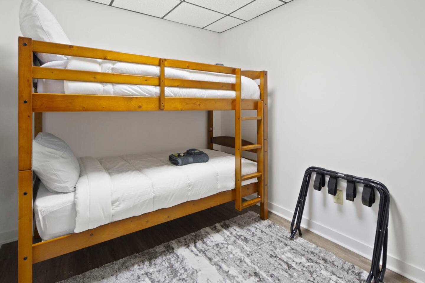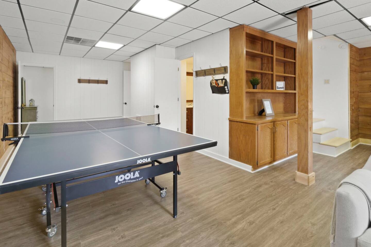 This 5BR/3BA will be yours to enjoy! The nicely furnished single-family log cabin can comfortably accommodate up to 12 guests. Read more about each space and included amenities below: LIVING SPACE • Cozy couch • TV with ROKU (no cable, must log in to streaming services) • Comfy side chairs BASEMENT • Cozy couch • TV with ROKU (no cable, must log in to streaming services) • Ping pong and foosball tables KITCHEN AND DINING • Full-sized refrigerator • Microwave, oven, stove, and toaster • Coffee maker and coffee provided • Basic cooking ware, utensils, and dishware MASTER BEDROOM • Plush king-sized mattress • Clean linens provided • Custom Bedside tables SECOND BEDROOM • 2 Cozy queen-sized mattresses • Clean linens provided • Bedside table and lamp THIRD BEDROOM • Custom bunk beds with 2 twin mattresses • Bedside table FOURTH BEDROOM • Bunk bed with twin mattresses • Dresser FIFTH BEDROOM • Queen-sized mattress • Dresser FULL BATHROOMS • Toilet and sink • Showers and shower/tub combination • Toiletries like soap, shampoo, and body wash provided ADDITIONAL AMENITIES • Fast wi-fi • Onsite washer and dryer • Pet friendly (must pay non-refundable pet fee of $75) • Driveway Parking, gravel parking pad LOCATION • 17-minute drive to Uptown Charlotte • 15-minute drive to Bank of America Stadium • 20-minute drive to Charlotte Douglas International Airport • 10-minute drive to UNCC