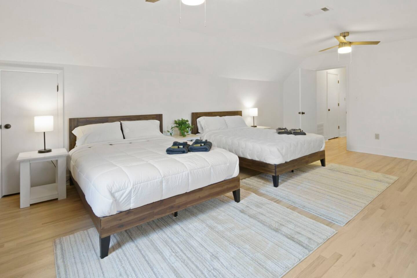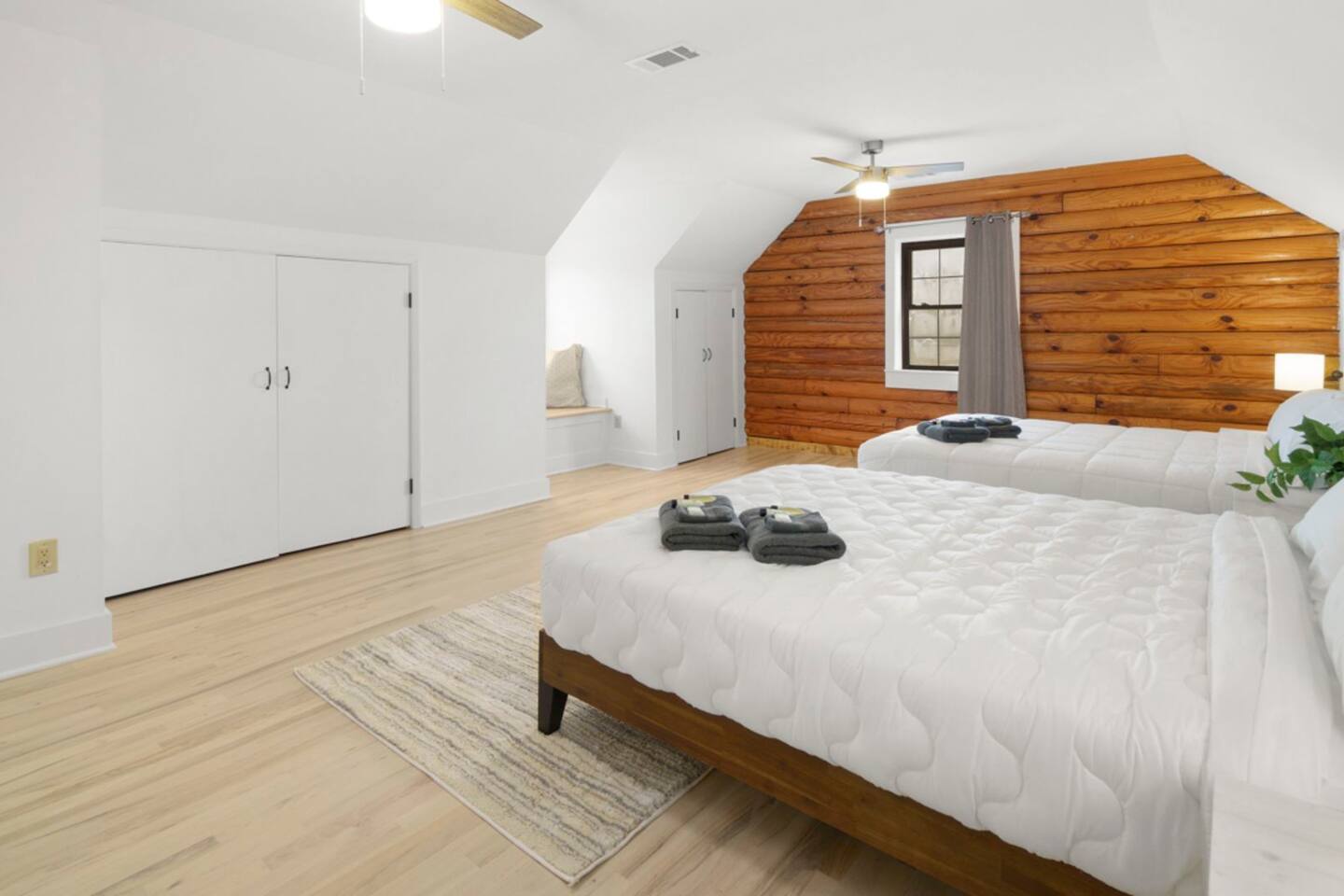 **Professional Entire Home Sanitization Every two weeks** Enjoy this newly renovated 5BR/3BA log cabin nestled inside a planned residential community, just minutes from Uptown Charlotte. Relax on new, custom, handcrafted furnishings specifically designed for this unique space. Play a friendly game of ping pong or foosball with friends and family or simply relax on the rocking chairs on the porch. You can experience the coziness of a quaint log cabin in the middle of a bustling city.