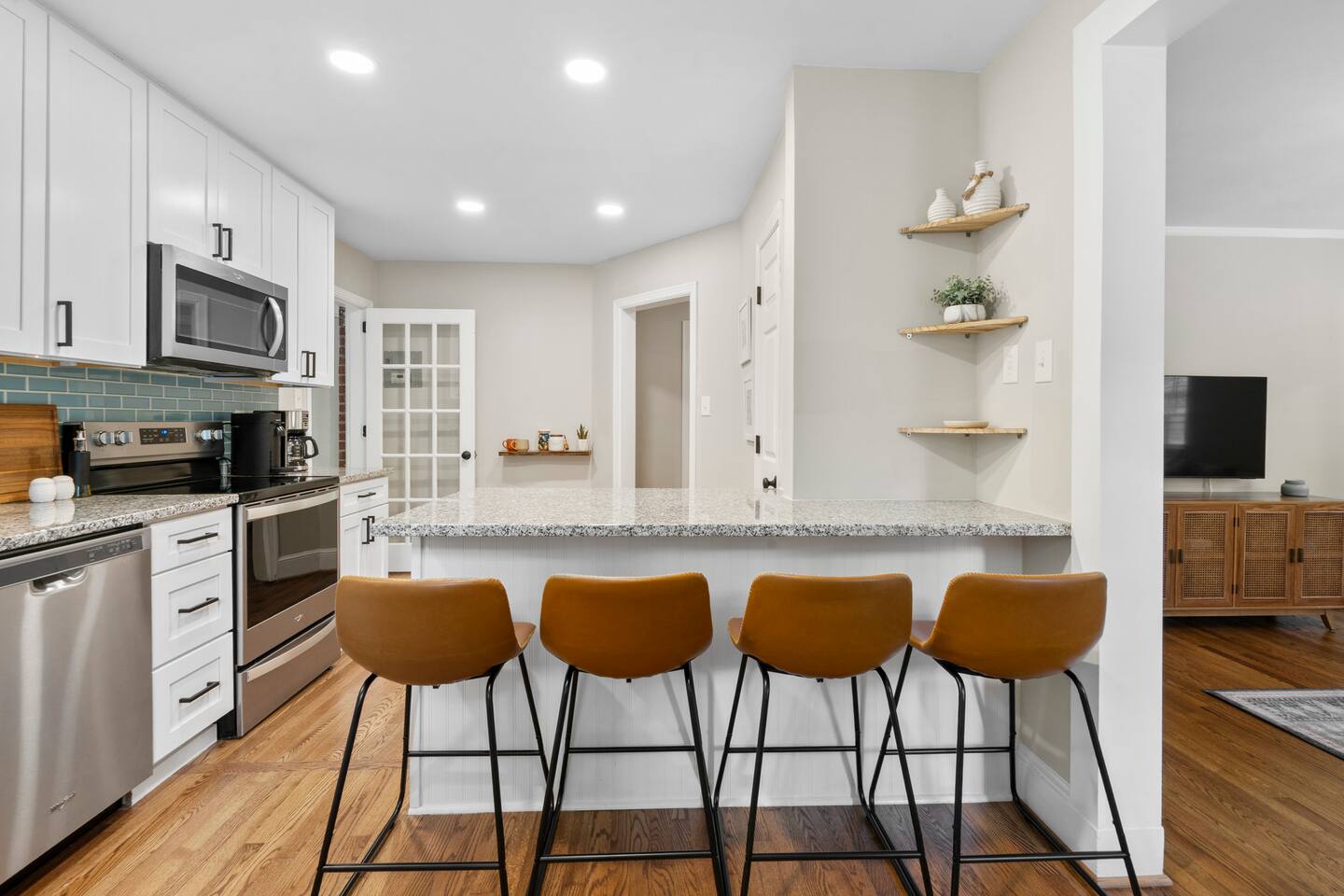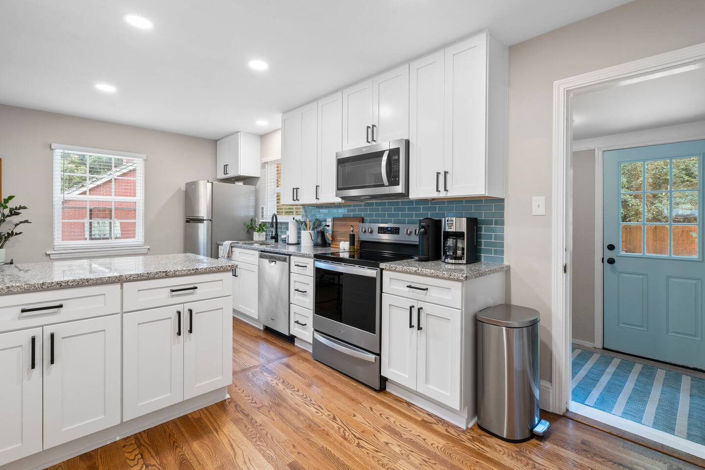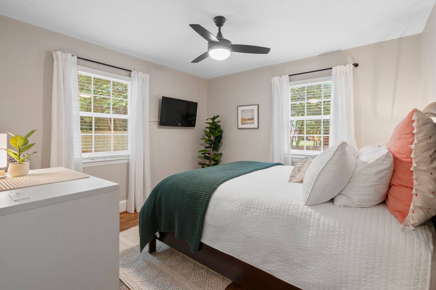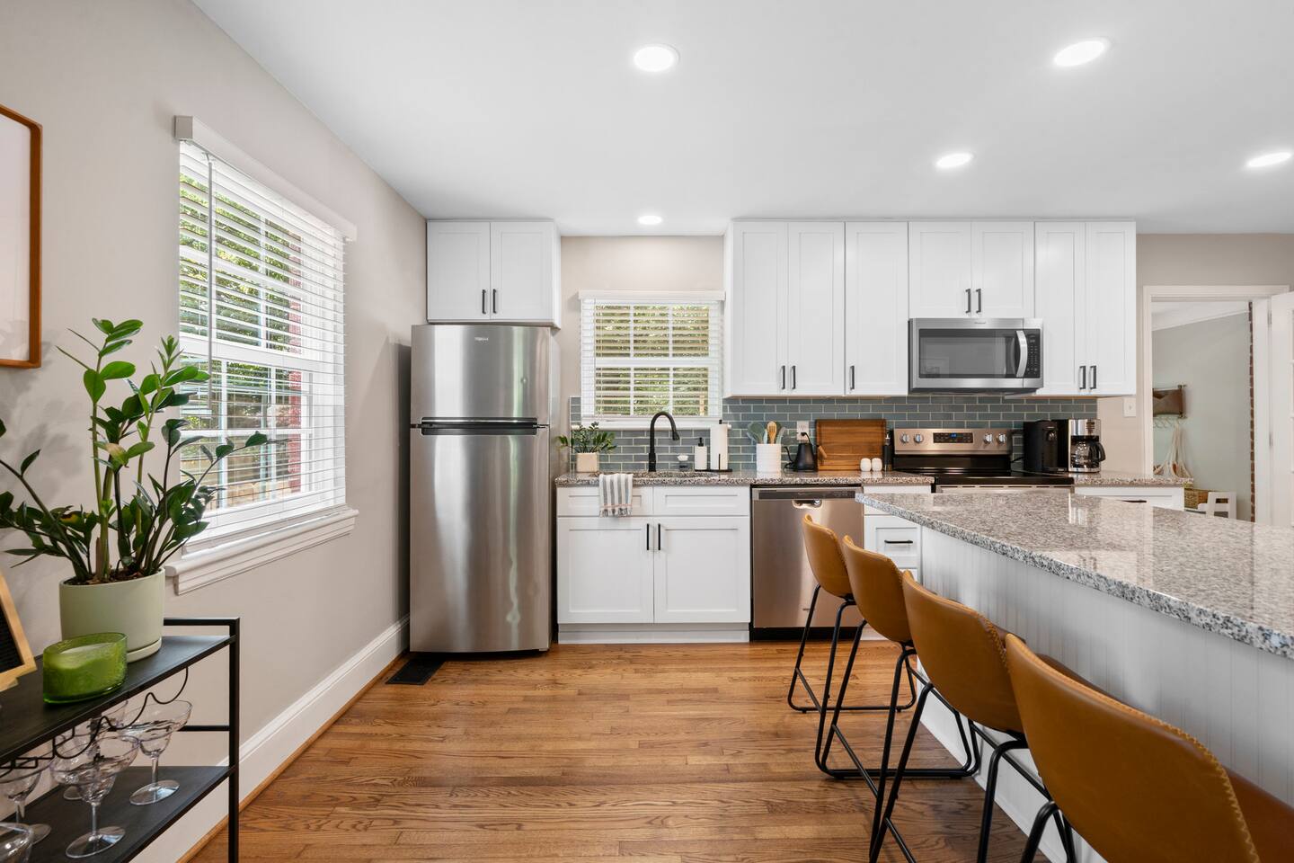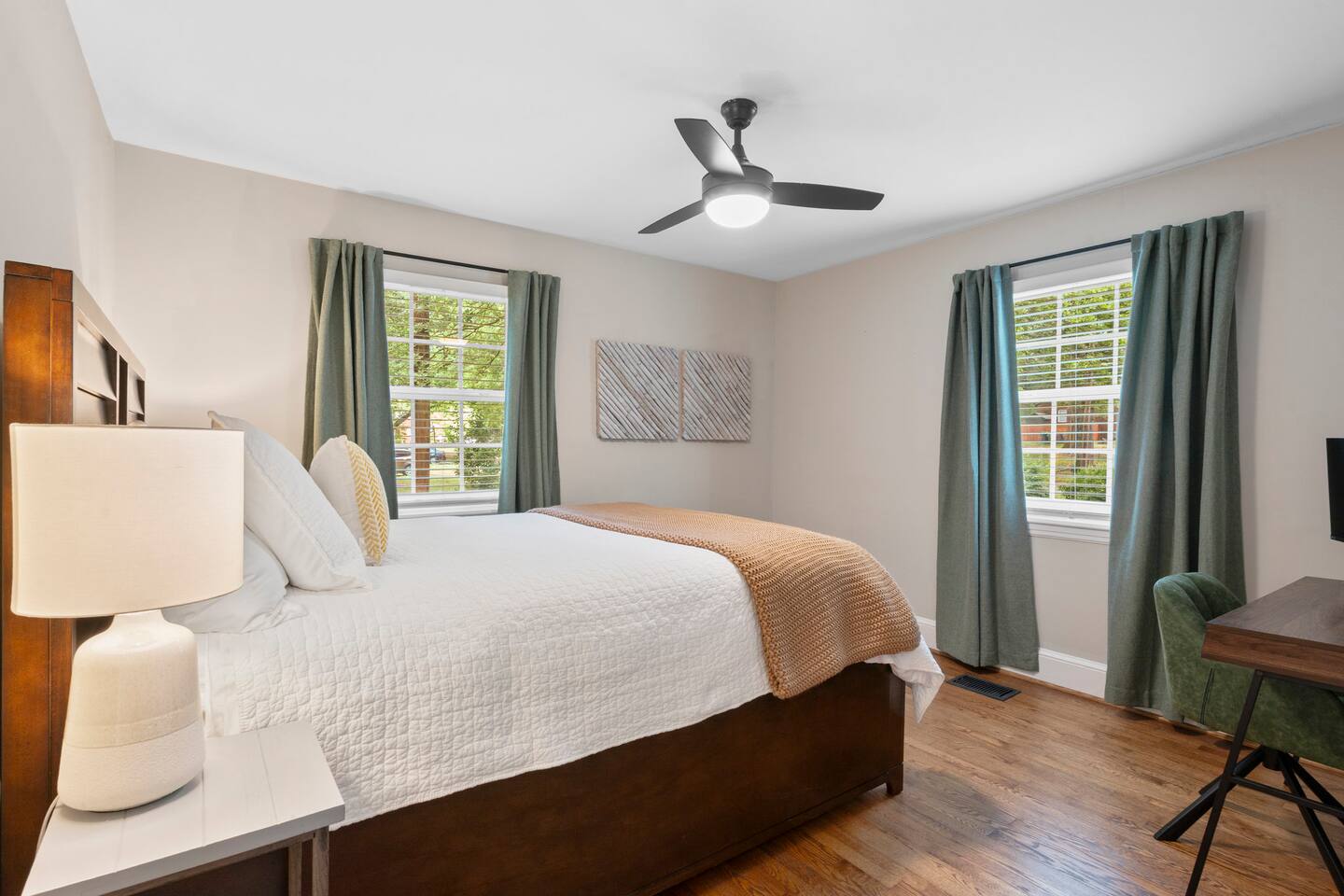 Tucked away on a quiet cul-de-sac in Charlotte’s historic Enderly Park, this thoughtfully designed 2-bedroom home offers the perfect mix of character, comfort, and convenience—just 3 miles from Uptown. The house is conveniently located less than a 10-minute drive from Charlotte’s top spots, including Uptown, Bank of America Stadium, South End, NoDa, and the Music Factory. Whether you’re here for work, a weekend getaway, or to explore Charlotte’s food, music, and brewery scene—you’ll have easy access to it all. Inside, you’ll find a warm, stylish space with modern comforts—including original hardwood floors, a fully updated kitchen and bathroom, and thoughtful touches throughout. Both bedrooms feature very comfortable mattresses with soft, high-quality linens, so you can truly rest and recharge. Need to get some work done? There’s a dedicated workspace with a separate monitor, perfect for remote work or longer stays. Step outside to your private, fenced-in backyard—complete with a fire pit, fruit trees, and a quiet patio ideal for slow mornings or relaxing evenings. We’ve stocked the home with everything you need to feel at home: a Nespresso machine with pods and creamers, basic cooking supplies, bathroom essentials, and even a pickleball set for some fun at nearby parks. ⸻ The Neighborhood Located in Enderly Park, a historic neighborhood currently going through a gentrification process, the area is home to a mix of longtime residents, young families, and new development. It’s a safe and residential part of town, but like anywhere in Charlotte, we recommend using rideshare or driving after dark. During the day, enjoy access to the Stewart Creek Greenway, Wesley Heights, and nearby parks and trails—great for walking, biking, or a quick run. You can even use the pickleball paddles and balls provided in the home at nearby courts for some local recreation. We’ve lived in the neighborhood for 8 years and are just 5 minutes away, so if you need anything during your stay or want a restaurant or coffee shop recommendation, we’re happy to help. We love this community—and we think you will too.