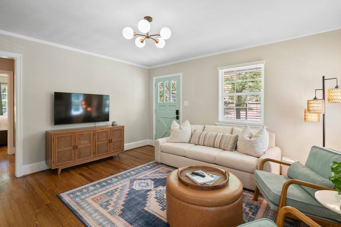 Welcome to a charming 2BR/1BA home on a quiet cul-de-sac just 3 miles from Uptown. Features original hardwoods, a stylish modern kitchen and bath, and cozy, curated touches. Enjoy a private backyard with patio, fire pit, and fruit trees—perfect for morning coffee or evening hangs. Near Bank of America Stadium, South End, Camp North End, and West Side gems like Town Brewing, Noble Smoke, Enderly Coffee, and Pinky’s. A comfy retreat close to all Charlotte has to offer.